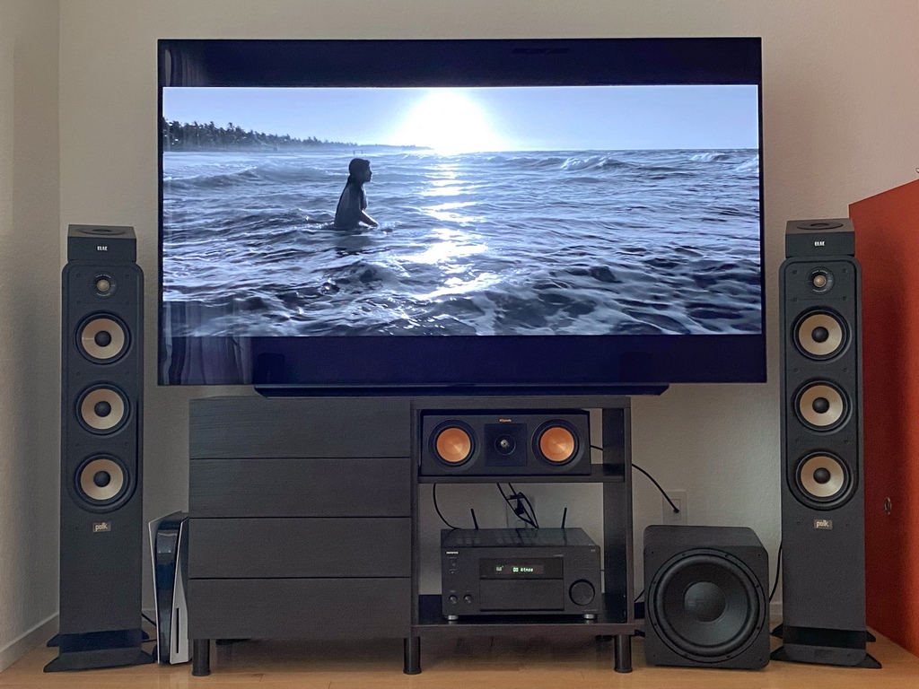 기존의 2차원 상의 5.1 채널에서 3차원의 공간감을 좀더 느껴보고자 5.1.2 채널로 천장에 소리를 반사시키는 업워드 파이어링 스피커 두 개를 추가하긴 했는데, 위쪽에서 들려오는 소리의 공간감은 음... 딱히 별로 잘 안 느껴지더라고요. 저처럼 소리를 반사시켜 듣는 게 아니라, 천장에 직접 스피커를 단다면 소리의 공간감이 훨씬 잘 느껴질 것 같기는 합니다.