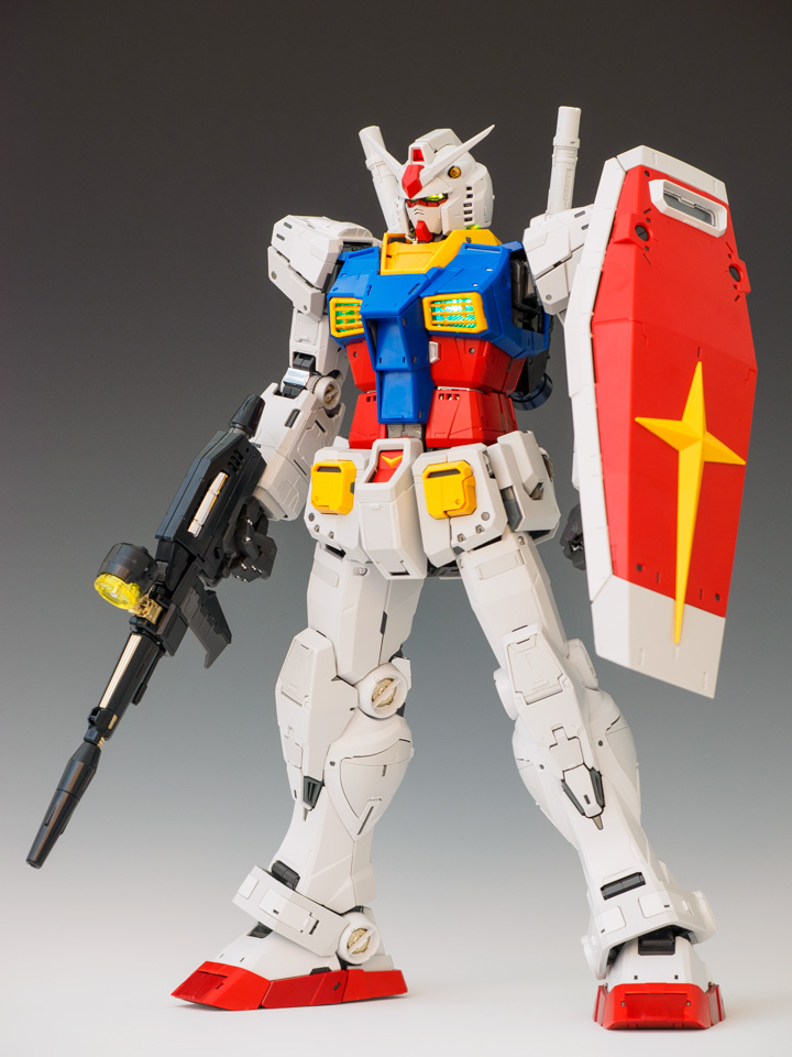 제 취향의 이상적인 비율보다는 하체가 다소 짧긴 합니다만, 전반적인 프로포션과 디테일은 마음에 듭니다. 가동성이 좀 떨어진다고 듣기는 했는데, PG 가지고 과격한 포즈로 갖고놀 일이 뭐 그리 있을까 싶기도 하고요.