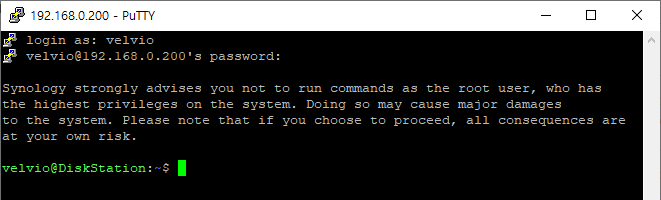 산 너머 산이라고 SSH는 또 뭐냐고요? 이건 ☞제 다른 글☜을 참고하시면 되겠습니다. 아무튼 NAS에 SSH로 접속하시고 나면 해야 할 일은 간단합니다. SSH 커맨드 프롬프트에